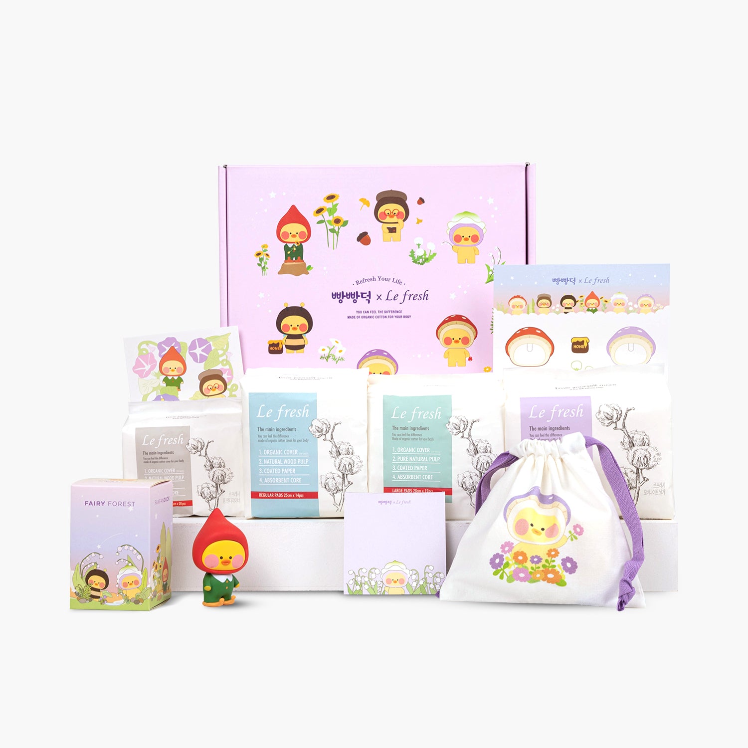 Lefresh First Period All-in-One Kit for Girls | Fairy Forest Edition | Vegan, Organic Cotton, Unscented, Long Panty Liners,Regular,Large,Overnight Sanitary Pads, pH Balanced Feminine Wipes, To-Go Pack