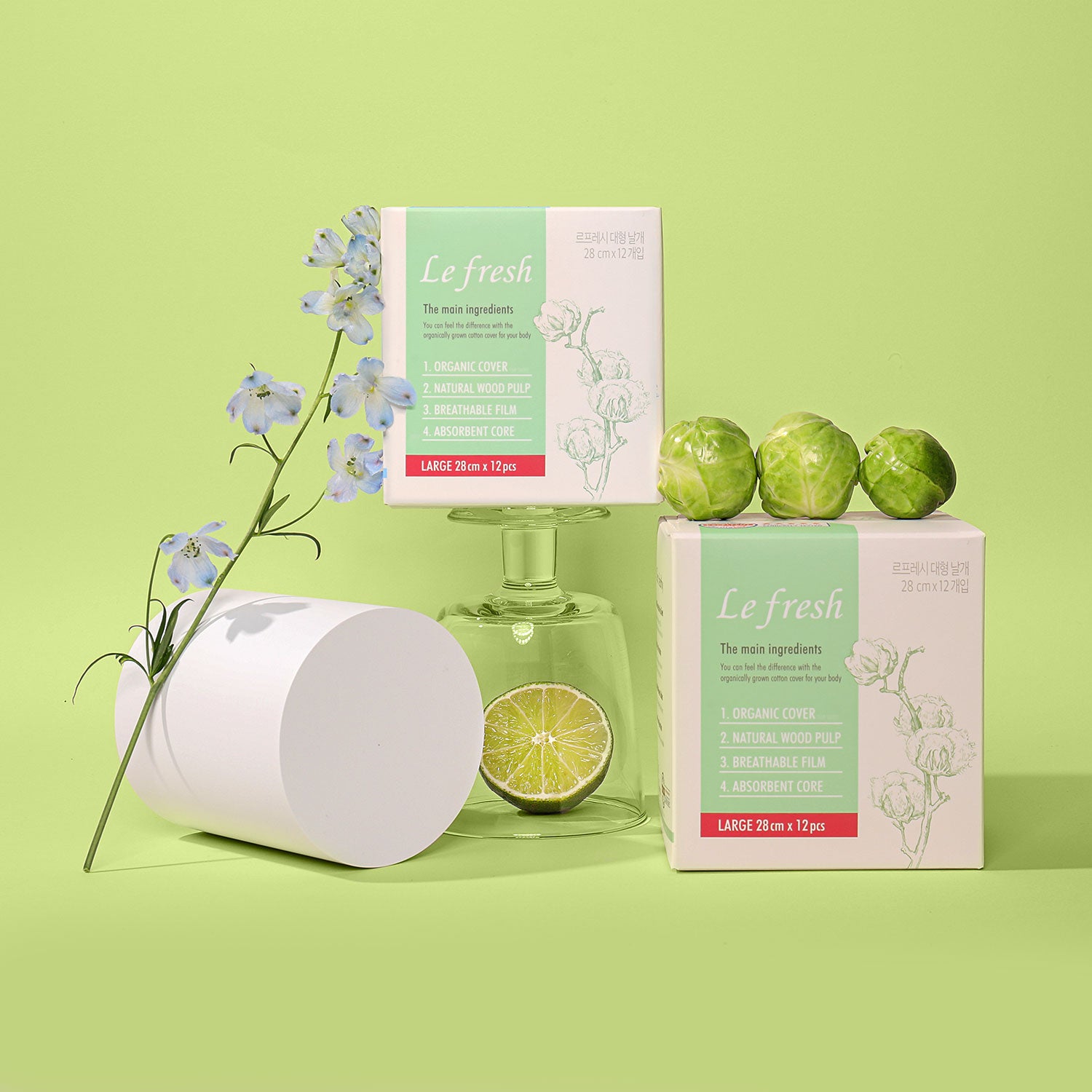 Lefresh Organic Cotton Cover Pads with Wings | Large, 24 Count | Heavy Absorbency - Unscented - Vegan - Chlorine Free - Ultra Thin Pads for Women (24)
