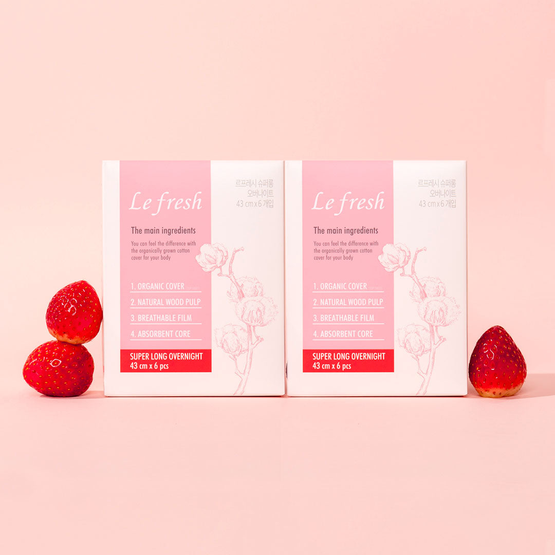 Lefresh Organic Cover Maxi Pads with Wings | Super Long Overnight, 12 Count | Heavy Absorbency - Unscented - Vegan - Chlorine Free - Ultra Thin Pads for Women